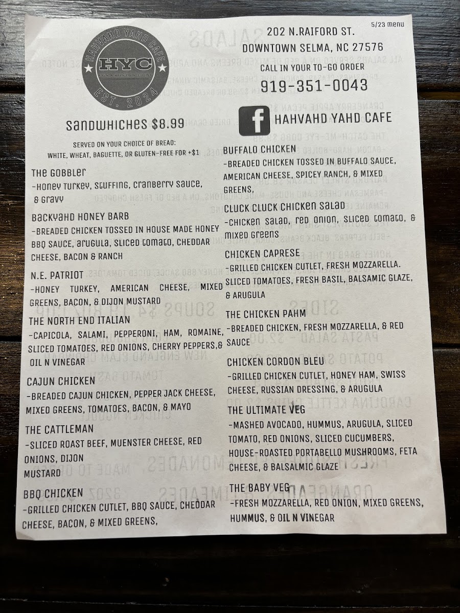 Hahvahd Yahd Cafe Menu